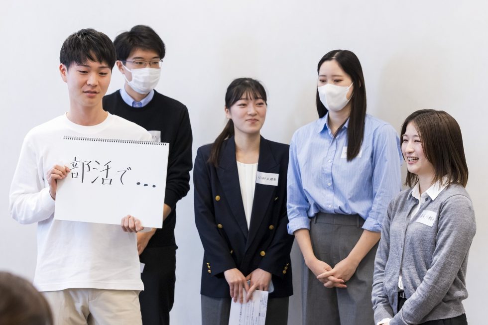 発表テーマは「学生時代の経験が生きた場面」。まずは皆で当時を振り返ります。