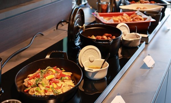 TOYOTA PREMIUM LOUNGEでは、和洋折衷の多彩なお料理をビュッフェ形式でご提供するほか、お客様の目の前で調理するライブキッチンでは鉄板焼きや天ぷらなどもご用意し、最高級のホスピタリティをお届けします。また、JAPAN AIRLINES LOUNGEやPLAYERS LOUNGEにおいても各コンセプトに合わせたお食事をご提供いたします。
