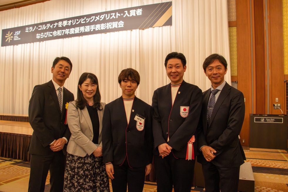 エームサービス株式会社に所属するフィギュアスケート男子 シングル 佐藤駿選手が、公益財団法人日本スケート連盟(以下、JSF)より令和7年度優秀選手として表彰されました。2026年4月22日、都内で開催された「ミラノ・コルティナ冬季オリンピック メダリスト・入賞者ならびに令和7年度優秀選手表彰祝賀会」において、佐藤選手は国際大会での優れた競技成績が評価され、表彰を受けました。