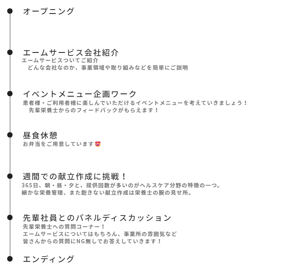 エームサービス栄養士職では27卒向けのオープンカンパニー
