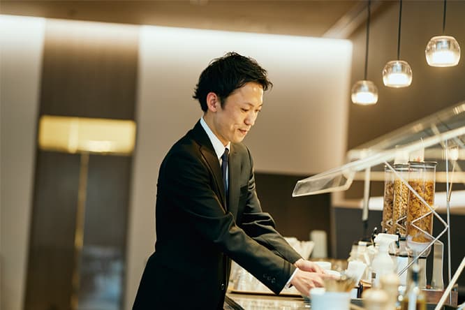 ※スターバックス コーヒー ジャパン 株式会社とライセンス契約を締結しています。新築・移転をすることになった大型急性期病院で、これまで担当していた患者食に加え、新たにできた職員食堂、外来レストラン、セブン-イレブン、スターバックスの5業態の飲食関連施設を、一括で運営受託しました。大病院における全ての飲食関連施設を包括運営することは、運営の難易度として最高レベルであり、クライアントとは約3年にわたって協議を重ねました。要望を叶え、また効率化も視野に入れたサービス「創り」に取り組んだ結果、当社が長年蓄積してきたノウハウを結集した、全てをワンストップで提供可能な、モデル事業所としての運勢体制を構築しています。